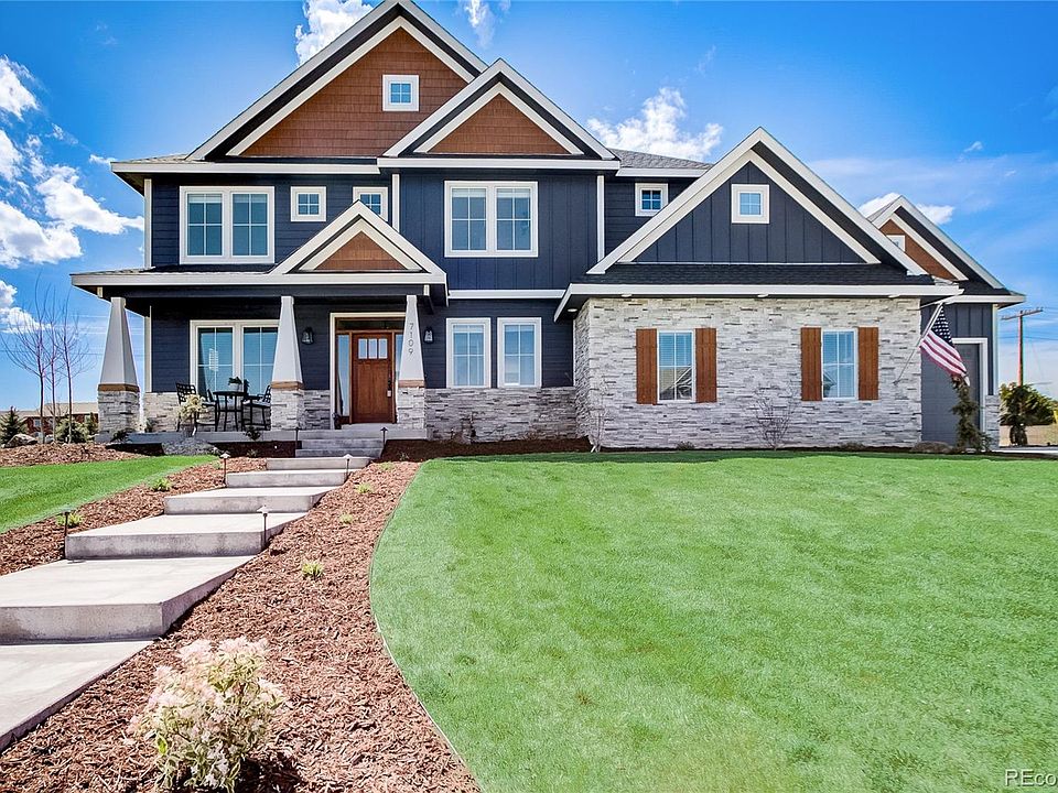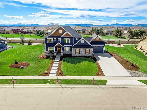 A prime Fort Collins location sets the backdrop for this custom Craftsman-inspired home! Showcasing scenic mountain views, this 2018-built custom home is perched on a landscaped half-acre lot in Lemay Avenue Estates. An idyllic covered front porch welcomes you into a luminous, open-concept floor plan enhanced with acacia hardwood flooring, transom windows and exquisite high-end finishes. Discover meticulous craftsmanship and top-notch amenities in the gourmet kitchen! Thoughtful features include leathered granite countertops, built-in Sub-Zero freezer drawers, a 48-inch gas Viking range and a large center island with seating. Abundant light fills the comfortable family room, which boasts a stacked stone fireplace flanked by built-in bookcases. Upstairs, the master suite delights with western views, a walk-in closet and spa-worthy en suite bathroom. Three well-appointed bedrooms and a large laundry room complete the second-level floor plan. More square footage awaits in the finished basement that includes a large recreation room with wet bar and a conforming bedroom. One of this home's many highlights includes the expansive backyard! This verdant oasis features a manicured lawn, raised garden bed, and gravel patio where you can gather around the fire pit on chilly evenings. The attached 5-car garage provides 1248-square-feet with 13.5-foot ceilings, allowing you to conveniently house your RV or boat! Enjoy easy access to Power Trail and Colorado Front Range Trail, as well as Robert Benson Lake and Southridge Golf Course. Come by for a look and leave in love!
