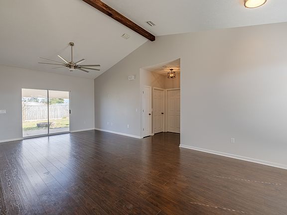 This beautiful 3 bedroom, 2 bath home is spacious and open. Located short distance to Tyndall Air Force Base and all amenities. The home offer an open floor plan, beautiful flooring, large dining room and a kitchen with stainless steel appliances and eat in area. The home has a large great room, a split bedroom plan, a patio, and a large privacy-fenced backyard. The master suite is large and has a walk-in closet and a walk-in shower with a frameless shower door. The home is ready to move in, and rent includes pest control, washer & dryer and is dog-friendly.