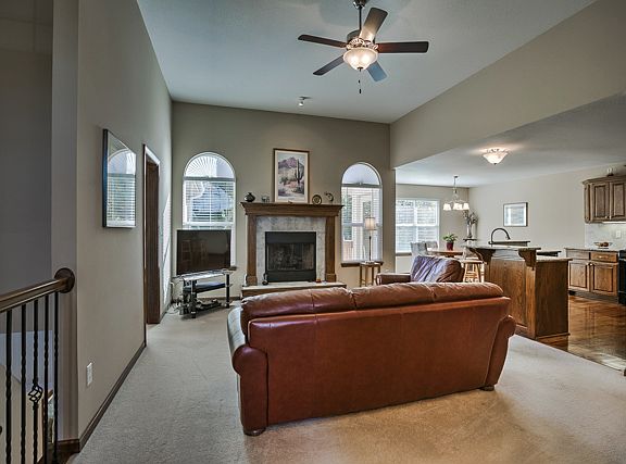 Maintenance-free patio/villa backs to treed greenspace. Home features a designer kitchen with island and granite counters, hardwood floor, extra large walk-in pantry, and gas stove for the gourmet cook. Open floor plan between kitchen, breakfast room, and great room. Lower level finished with 3rd bed and bath. Rec room walks out to patio. Enjoy the fishing lake. Sprinkler system for front and back yard. Back yard is fenced.