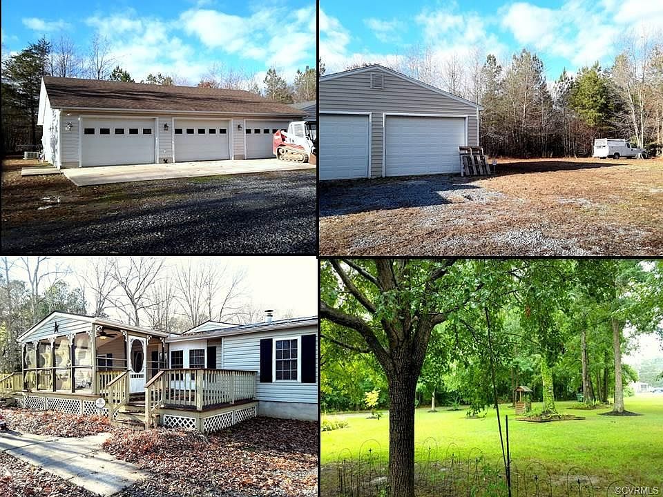 ROOM FOR EVERYONE ON THIS OVER 3 ACRE LOT WITH A 5 CAR DETACHED GARAGE AND SEVERAL SHEDS FOR ALL YOUR TOYS. THIS CUTE 1688 sf (MANUFACTURED) RANCH HAS AN ADDITIONAL BONUS ROOM, SCREENED PORCH, DECK, PERMANENT FOUNDATION, METAL ROOFING, DRYWALL, FIREPLACE, HARDWOOD AND TILE FLOORING, GRANITE COUNTER TOPS AND MUCH MORE. PERFECT MAN CAVE, 5 GARAGES, OFFICE SPACE AND LOTS OF ROOM OUTDOORS. PLENTY OF SPACE TO WORK ON VEHICLES IN THE GARAGES AND RIDE ATVS ON THE PROPERTY. THIS HOME CONVENIENTLY LOCATED RIGHT OFF ROUTE 1 NORTH OF LADYSMITH AND VERY CLOSE ACCESS TO I-95. COME CHECK OUT ALL THIS HOME HAS TO OFFER.