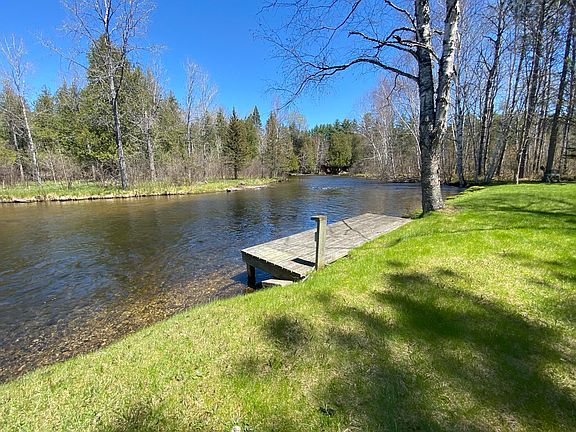 Located on the North Branch of the AuSable River with frontage on both sides of the river. The house is situated on 2.20 acres with 342.78 feet of frontage. Dock at the river's edge. Fantastic Ranch Style home/cabin with 3 bedrooms and 2 full bathrooms. Open Concept Floor Plan. Updated Kitchen with lots of cabinet space. Dining Room off the kitchen. Large Living Room with wood burning stove. The ''River Room'' is the perfect spot to enjoy your morning cup of coffee and listen to the river flowing by! Nice rustic flare with the knotty pine. Master En Suite complete with private updated bathroom and double closets (one is cedar lined) overlooking the river. 2 additional bedrooms plus a spacious bathroom. Attached 2-car garage. Laundry room with stacked washer and dryer and large sink.