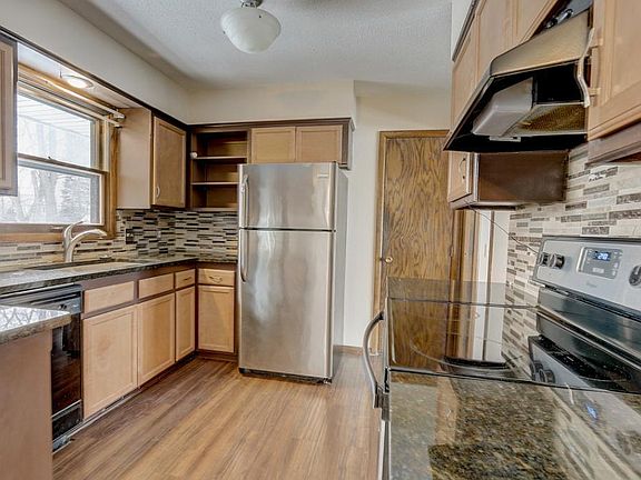 This Minneapolis property offers an open back deck area, granite kitchen countertops, a den, gas heating, granite vanity in the bathroom, and a two-car garage.