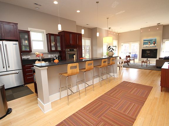 This beautiful contemporary turnkey rowhouse in Sherman Hill is a rare find. Constructed in 2006 and owned by one family ever since, this home offers modern amenities and design in one of Des Moines's most desirable historic neighborhoods. This surprisingly spacious townhome is over 2700 sq ft, with three roomy bedrooms plus an office and 3.5 baths. Gourmet kitchen with honed granite countertops and island, gas stovetop, and stainless steel appliances. End unit with lots of natural light and upscale finishes throughout, open floor plan, 11' ceilings, bamboo floors. Master suite has a slate shower and separate soaking tub, large walk-in closet, and custom maple built-ins. Skyline views from all three levels, great room with fireplace, family room with wet bar, landscaped yard , screened-in porch, no-maintenance back deck with pergola, finished basement area (330 per seller) with plenty of storage, and attached two-car garage.