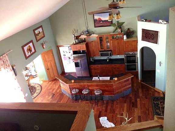 Beautiful home on almost 12 acres of land. Santos mahogany flooring, huge fireplace, three stall extended garage with geo thermal floor heat. House has two geo thermal units one runs air one runs floor heat in basement and garage. House was designed to have views of pond, city lights, and horses from every window. Master suite is on top level with jet tub that over looks night lights, two walk in closets with its own laundry, double shower, double vanity, over-sized windows overlook horses and ducks in the pond or watch the sunsets. Great room has a 21 ft. vaulted ceiling with an open kitchen/dining/sun room/living room. Main floor also has another laundry room. basement has a large rec room, and two more bedrooms and full bathroom. Basement was just finished this year. Shed is 32X45 with an overhead door and sliding door with water and electric in shed. There is also a lean-too for horses to run into and a Ritchie waterer hooked up out there. The garden also has water to it. 6 bedrooms in all. One is set up for an office and three and a half bathrooms. Please visit http://www.listingcheckout.com/rdcd/126714 for an important notice about this property.