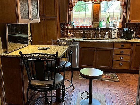Quality built all brick home in beautiful condition near historic Ridgewood in perfect move-in condition! Tastefully decorated throughout! Living room has lovely hardwood, crown molding and a wood-burning fireplace w/cabinetry on either side. Large formal dining room opens into home office. Amazing kitchen w/Virginia hand scraped h/w floors, granite, maple cabinetry w/2 pantries w/pull outs and other custom features. Eating bar w/stools and TV remaining. All appliances stay. Half bath off kitchen w/tile flooring and full wall of oak cabinets. 1st floor has 9 ceilings and cased openings. 2nd floor features a new bathroom w/tile shower and pull down seat, as well as a huge linen closet. 3 nice sized bedrooms, ALL with huge walk-in closets. Solid masonry construction. Basement is huge with storage galore and an additional 1/2 bath. Gas furnace with April Aire. Nice deck on rear of home with awning plus huge front porch with swing. Private drive with plenty of parking leads to 2 car garage plus 2 car carport.