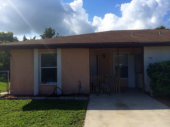 Half of a duplex, located on cul-de-sac, move in ready, two bed room, two bath, kitchen and both bathrooms have been remodeled, tile throughout. Sun room in back with window AC unit. Large fenced in back yard.