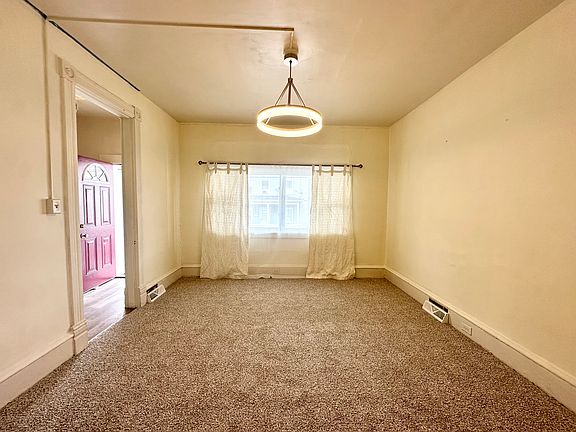 Enjoy this full carpeted 3-bedroom home that bright & fresh! It features a large living room, large kitchen and 1st floor laundry. The second floor has two large bedrooms, and large finished attic for office, hobby room, or bedroom. The covered rear patio & fenced back yard are ideal for a small garden. Off-street parking for two vehicles is in rear. 1 yr lease No smoking. No 3rd party subsidies. Max 1 pet, dog (no cats). Tenant pays all utilities