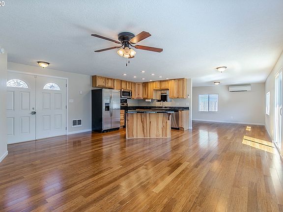 Charming 3 bdrm, 1.1 ba home located in Thurston w/ RV parking! Home features beautiful open kitchen overlooking living/dining area w/ bamboo flrs, hickory cabinets, island w/ eat bar & all S/S appliances included. Lg windows for lots of natural light. Mstr bdrm w/ sink & half bath. Spacious full bath w/ large vanity. Slider off living/dining area to fully fenced backyard w/ patio. In ground sprinklers in front & backyard. New exterior paint. Roof & gutters only 4 years old!