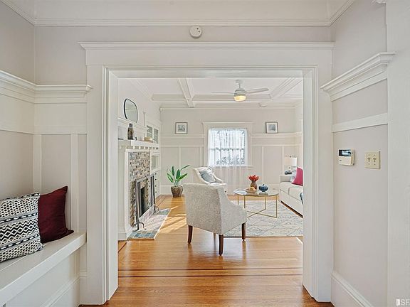 Welcome to Bushrod, one of America's most popular neighborhoods for homebuyers. This fully detached 2-bedroom home is set in its own green oasis; its multifaceted design features both Craftsman charm and Modern upgrades. Ascend to main level and be greeted by a classic foyer with bench seating. Continuous wood floors lead you to bright living room with stone fireplace, coffered ceiling and paneled walls. Eat-in kitchen features Shaker cabinetry & stainless steel appliances. Pamper yourself in designer bathroom or take a rest in either of the spacious bedrooms. Find your center in landscaped yard spaces or entertain yourself in the lower level office or game and sitting room. Bathroom, laundry room and parking garage completes this floor. This convenient NOBE location is just blocks from BART stations, Berkeley Bowl market, South Berkeley Farmers Market, plus shops, cafes and eateries along Alcatraz, Telegraph and College Avenues. Easy access to UCSF Children's Hospital & UC Berkeley.