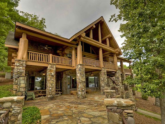 REMARKABLE HAND-CRAFTED CANADIAN LOG HOME ON LAKE BLUE RIDGE! Situated on a spacious, level lot w/ stunning lake & mountain views, deep water, paved roads and just minutes from Downtown Blue Ridge. This home features 5 spacious bedrooms, 4 full baths, a large gourmet kitchen w/ granite countertops, a full finished basement w/ additional kitchen. Plenty of deck/patio space featuring beautiful stonework perfect for entertaining and enjoying the natural beauty that surrounds you. The garage is perfect for storing your boat and lake toys. Too many upgrades to list and no detail overlooked. Don't miss this rare opportunity to own your dream estate on pristine Lake Blue Ridge!