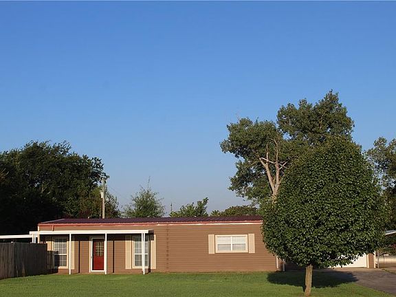 WOW......GREAT PRICE ON THIS HOME ON SMALL ACREAGE. This is NOT a mobile home. It is metal home sitting on a concrete slab. Such a cute home with very nice size rooms and lots of storage and room to roam. Bedrooms and living room are very nice sized and bedrooms have nice closets. Kitchen has a great pantry plus lots of cabinets, gas cook stove, dishwasher, refrigerator. Very nice fenced back yard with a storage building. and large covered patio. There is a nice sized garage plus a one car carport. All on hard surface road not far from town.