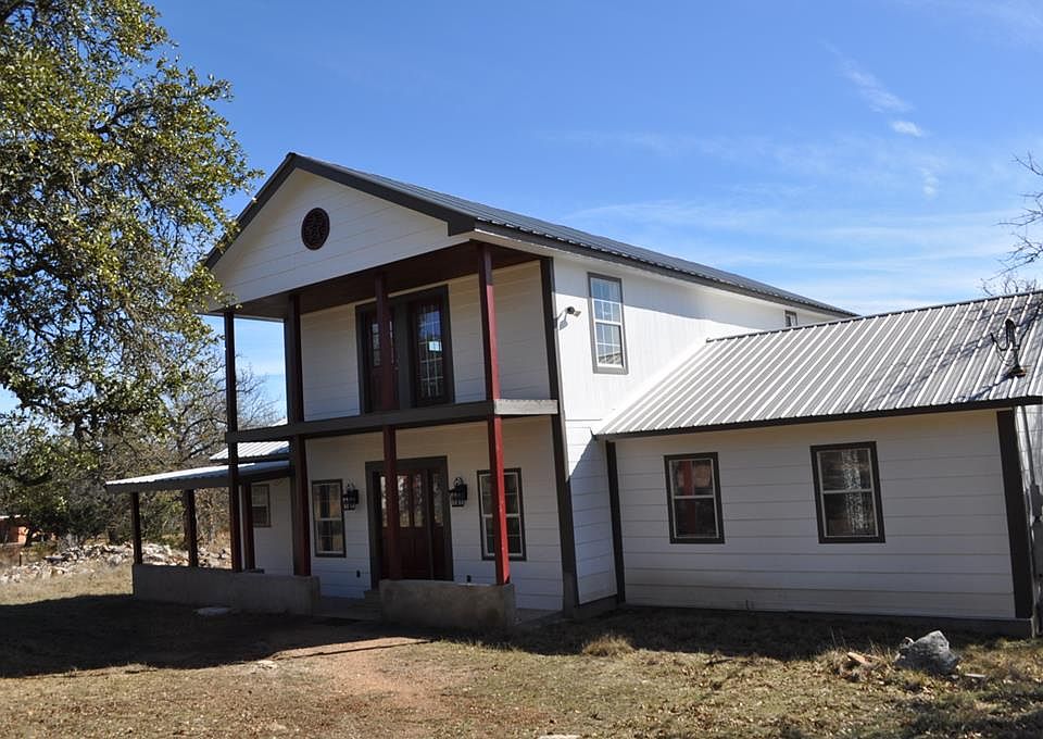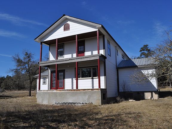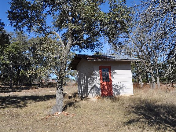 Here is the perfect project for the handyman type to take over and complete this home with a bit of history. Apparently this was at one time the hunters cabin on Alamo Springs Ranch, part of the cabin was removed and then rebuilt to its present footprint. Heating and AC systems are in place but there is electrical, plumbing, some drywall, painting and trim work that needs to be completed. Main bedroom is downstairs as is a large flex area for exercise or game room. At top of stairs is another large space be the two bedrooms, a great place for the kids study or play area. Shed next to home was used as a place to process the deer harvested from the ranch, it needs some TLC but could be a usable space. Another structure is a 1/1 guesthouse, needs work. There is no record on well, septic system is grandfathered but not permitted. Variety of trees with oaks, cedar and walnut. Turkey, axis and deer like the seasonal creek at far end of property. Note that the fence on the southern boundary is not on the property line, property line is south of fence, orange ribbons are on corner stakes and in a cedar tree at Alamo Rd. Exact home is an estimate only
