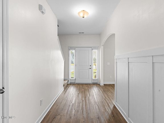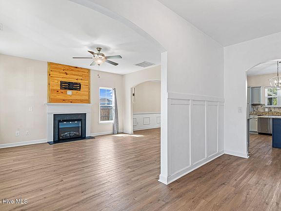 Better than New! 4 BRMS/2.5BA, only 2 years old, with $25,000+ of recent upgrades, on over a 1/2 lot in a cul-de-sac.. There are FRUIT trees! Apple, Pear, Peach, and Grapes. Oh My! Such a treat to have your own fruit stand in your own backyard! Located in lovely Orchard Creek, with NO city taxes! Upgrades include new LVP floors and Board and Batten in the large foyer entry. The open floor plan is perfect for entertaining. The beautiful cabinetry in the BIG kitchen is plentiful, and the kitchen features granite countertops with tumbled stone backsplash. The kitchen island features an outlet and is perfectly sized for a few of your favorite bar stools. The island also has beautiful lighting above it, making the kitchen extra special.. The property also features a built-in wine cooler, stainless steel appliances, and a $1,000 credit for the buyer to select their own refrigerator or use as they choose. The living room has an FP, with a custom wood TV mount ready for your enjoyment, watching your favorite sports and pastime shows. Upstairs is the primary suite and the other bedrooms. Two of the bedrooms have never been slept in. The master has two walk-in closets and a tray ceiling. There is a HUGE FROG/4th bdrm with a custom bookcase/entertainment console that was built onsite. The 2-car garage is fully sheet rocked, and painted. Outside, the home features a front porch, and in the rear, it's a fully fenced backyard. The rear features a 16x18 covered patio that's directly off the dining room. There is also a large 12x16 shed with porch, lean-to, and windows that is perfect for She-shed, Man Cave, Home office, or kid's Playhouse. This home is conveniently located just a short drive from Camp Lejeune and MCAS New River. This home is truly a unique gem, offered at an exceptional value considering all the upgrades and features. It's definitely worth the visit... It will not disappoint!