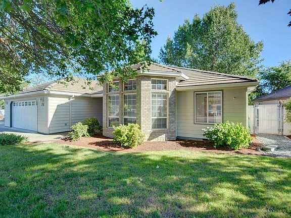 MOVE-IN-READY! This 3 bed/2 bath 1,843 sq. ft. home with RV parking is located in the desirable Jackson Creek Estates! Beautifully landscaped front and back yard complete with inground sprinklers add to the curb appeal of this brick faced home. Inside you'll discover 10 foot ceilings in the entry and formal living room, new flooring in most of the home, plenty of built-ins, as well as updated light fixtures. Primary suite has a large walk-in closet, vaulted ceilings, soaking tub with cascading waterfall faucet, separate shower, and double vanity. Long lasting tile roof, shed, and built in wash sink. The 2 car garage is finished and the attic space above the garage offers plenty of additional storage. Covered patio in backyard with built in gas hookups for a BBQ. Fully fenced backyard along with oversized driveway. This home is exceptionally clean and well maintained and will not last long! Schedule a tour today!