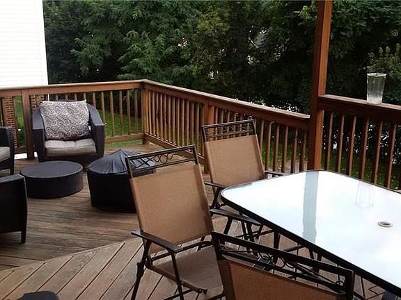 Make yourself at home in this charming 2 br 2 bath home. Trees line the front yard and the back yard has a large deck with great sunset views! Both bedrooms are very large. Pittsburgh potty in basement with door that closes. Alleyway behind home leads to garage at back of house. 3 minute walk to bus routes along route 30 which go to downtown and Oakland along the busway.