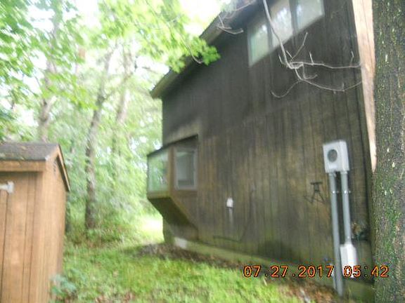 Custom built contemporary home designed by famous architect, Morris Gamble has a custom spiral staircase to loft and full basement on 5.44 acres of woods, fruit trees and flowers. Energy efficient with passive solar and central air. Needs some TLC.