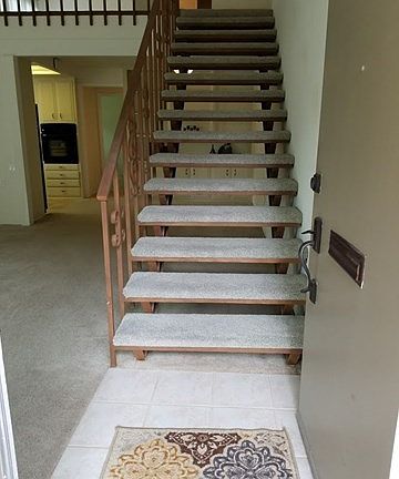 Welcome to Laguna Woods converted Seville model with two master suites. Upon entering you are invited into the spacious living and dining area with cathedral ceilings and a picture window with french doors leading onto private patio. The kitchen has GE appliances which include; a newer refrigerator & dishwasher with an upgraded Thermador Hybrid Induction stove top. The bathrooms have glass door enclosures with safety bars and handrails. The master bedroom upstairs was adapted, creating room for an office and features a beautifully remodeled shower. Newer dual paned windows, blinds, shutters and 3 upgraded Mitsubishi heating and air conditioning units add comfort and functionality to this home. There is a large attic storage area with a pull down ladder. A stackable washer and dryer are provided for your convenience. Laguna Woods is a guard gated senior community, with the homeowners association including water, trash, cable and landscaping. This resort-style 55+ community boasts 8 clubhouses, 5 pools, 27 hole golf course, tennis courts, 2 fitness centers, equestrian center and over 250 clubs for your enjoyment. Carport with storage cabinet is just steps away , middle unit #6.