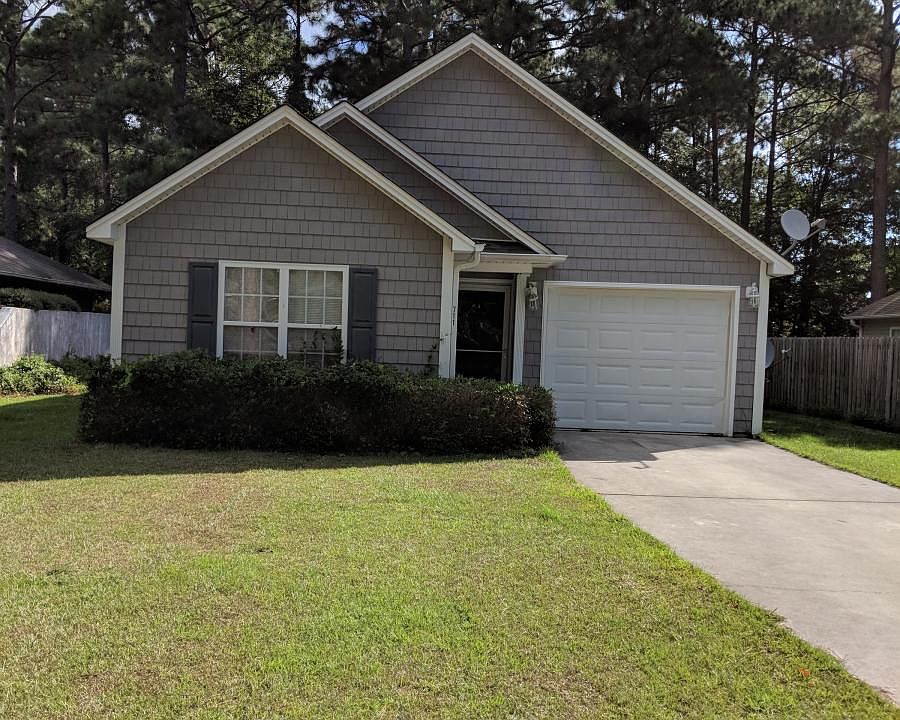 Central Hampstead 3 bed 2 bath home with nice private lot, set back off a quiet street with concrete driveway. Large living room open to kitchen with sliding door to grilling deck in rear. Washer dryer hookup. Small one car garage ideal for storage or golf cart! House is getting new paint and carpet so it will be ready approx mid September. Pet friendly with fee.