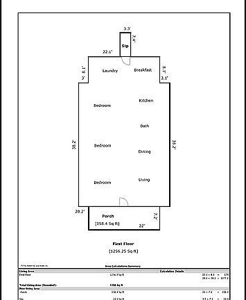 - Total interior livable area: 1,256 sqft