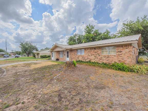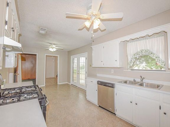 Delightful four bedroom, 2 bath brick home that backs up to the Dublin city park. The crisp and clean kitchen features freshly painted white cabinets, stainless steel appliances, and an abundance of storage options. Enjoy relaxing in the spacious living area with attractive laminate flooring. Each bedroom has oversized closet space and garage conversion makes for the perfect 4th bedroom or hobby room. Exit through the french doors in the kitchen to the huge covered back porch with wonderful views of the park setting.