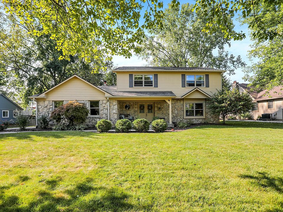 Step inside this move-in ready, 5 BR, 3.5 BA home in Carmel's desirable Hunters Creek! You'll love the updated kitchen with granite counters, new cabinets, SS appliances and a breakfast bar. Family room showcases vaulted ceilings with new skylights and wood-burning fireplace. Current owners added on a sunroom to main level (with its own heating/AC unit) that is currently being used as an exercise room. A 5th bedroom and 3rd full bath were also added to the second floor. Pella windows throughout the home, Brazillian hardwoods and a private, landscaped, fully-fenced backyard with large paver patio & fire pit are only a few of the things you'll love about this home! Walk to Clay Terrace and the Monon Trail and have easy access to SR 31. Carmel Clay Schools! MUST SEE!