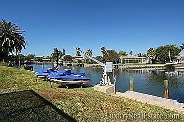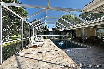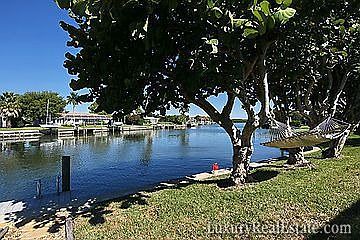 Wonderful Emerald Harbor home with great boating water and deeded beach access. This is truly the Florida lifestyle with most rooms opening onto the pool and overlooking gorgeous water views and the beach is only a two minute walk away. The three bedroom home has a terrific split floor plan and feels like a cottage with very soft colors on the walls. Large master that also opens onto the pool and views and an eat-in kitchen are nice extras. The home features a really beautiful caged pool and deck that overlook the canal with dock and views.