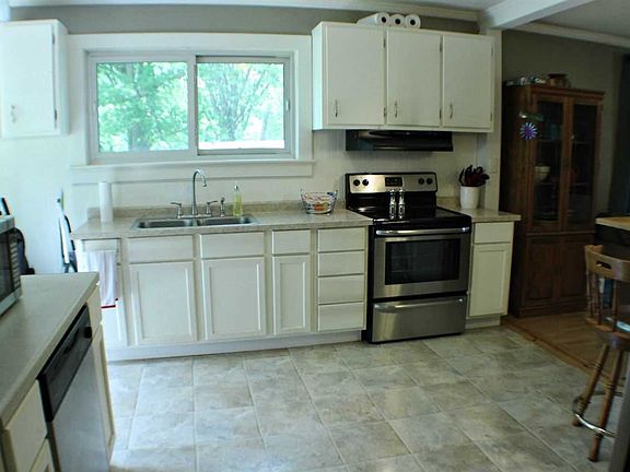 Great home on the Northside of town with 1.98 acres. Home has been remodeled featuring 2 bedrooms, 1 bath, large living room with hardwood floors, eat in kitchen, remodeled, unfinished basement, attic area that has been refinished & could used as a bedroom, if a closet was built in. Home has replacement windows and new vinyl siding too. Lot is a park like setting with mature trees & plenty of room for entertaining. Included in the sale: Refrigerator, Range/Oven, Microwave, Dishwasher, Washer, Dryer, Playset & Blinds - House does qualify for USDA financing