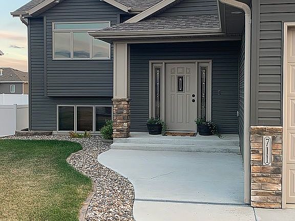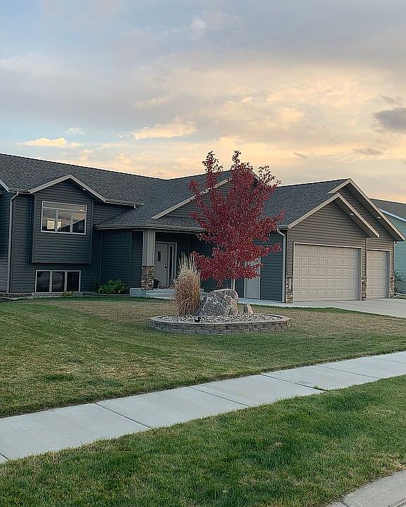 Mandan home for sale! 4 bed, 3 bath home located in quiet, Mandan neighborhood close to Fort Lincoln school. Zero Specials Balance! Smoke and pet free home. Outdoor/indoor/garage speakers throughout home. Sellers interested in short term Lease Back option if Buyer is interested. 2014 split level triple garage fully finished walk out basement 881.7 SQF triple garage fully finished heated, floor drain, hot and cold water. Epoxy finished concrete floor 1245 square foot main level 1236 square foot lower level Vinyl exterior with stone in the front Patio 14 feet by 106 inches Sprinkler system Rock landscaping with brick retaining walls Maple trees and perennials No specials as they are all paid off Large foyer with coat closet Living room has gas fireplace along with a tray ceiling Kitchen has maple cabinetry Under cabinet lighting Stainless steel appliance Tiled backsplash Center island Pantry Laminate flooring Dining room has laminate flooring Sliding glass door out to 12 x 14 deck Master bedroom has walk in closet Tray ceiling White-washed wood accent wall Master bathroom quartz countertop 2nd bedroom has walk in closet Full bath with quartz countertop Lower level has two bedrooms Large family room Another gas fireplace Full bathroom Quartz countertop Laundry room Utility room House has gas forced air heat Central air Humidifier Radon mitigation system