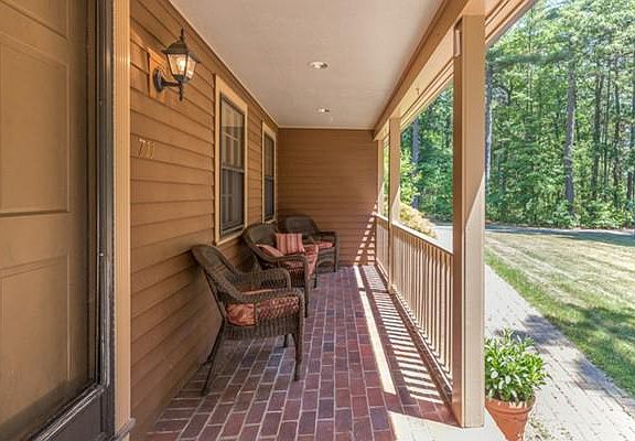 WOW - NEW ROOF JUST FINISHED JULY 2016 This 3 + bedroom, 2.5 Bath Colonial has a charming front farmers porch and has been lovingly maintained inside and out. The first floor features hardwood flooring and tile throughout. Second floor has bran new carpeting just installed June 2016. The Eat-In Kitchen boasts granite counter tops, gas stove, stainless steel appliances and hardwood flooring .First floor laundry room and half bath with tiled flooring. Nice front to back living room with hardwood flooring, fireplace and wood stove. Master bedroom suite boasts a large walk-in closet and a master bath with granite counter tops. The second floor family room is huge: 32 X 22 with an arched window and new carpeting - could easily be converted to a fourth bedroom. 3 Car Garage - perfect for extra drivers in the family or car enthusiast. Gorgeous landscaping and perennials. The home abuts the high school property and is in a perfect commuter location to either routes 3, 119 and 495.
