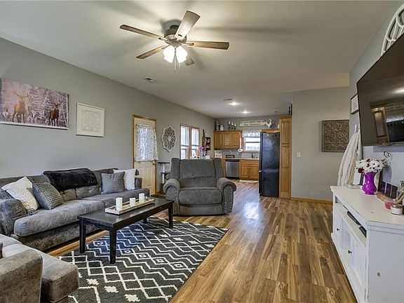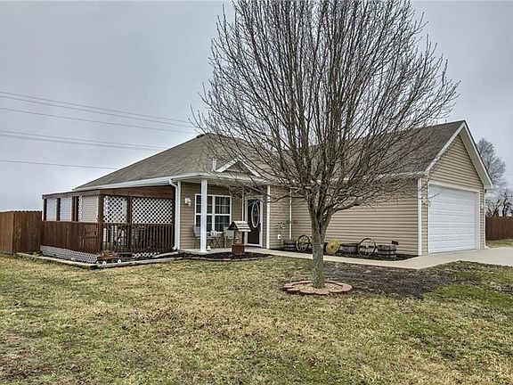 One level living on over a half acre. Well maintained Ranch home just minutes from Harrisonville and Pleasant Hill. New flooring in the main living area, kitchen and hallway, newly updated bathroom, covered side patio for entertaining, Majority of the property has been fenced in with a 6 foot privacy fence. This is 2 lots being sold together...there are separate utilities ran for the lot the home isn't on if there is interest in building.