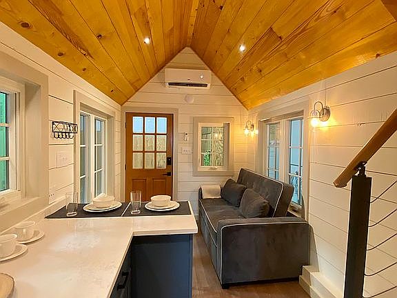 *INVESTORS TAKE NOTICE* This like new custom built tiny home is for sale and is located in High Point Escape only 2 miles from Mentone, AL. The lot is over an acre and can accommodate two additional units. It is an excellent investment opportunity or use it as your vacation home if you prefer. Plenty of area to create a cluster of tiny homes with firepit, pizza oven, or other outdoor living amenities. The exterior is designed with board and batten, cedar shingles, and metal roof. It has Anderson casement windows. The interior consists of pine walls, granite countertops, washer/dryer, Bosch oven, smooth cooktop, Rinnai tankless water heater. The home is very quaint and upscale with attention to detail in every finish and fixture used. You would be hard pressed to find better real estate investment returns. Contact Terry for more information. www.cahabatinyhomes.com