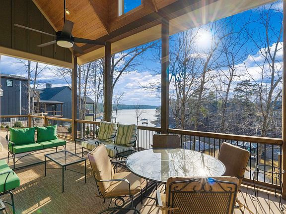 Gorgeous lake home in prestigious Creek Crossing! The home design allows for captivating lake views upon entry with vaulted ceilings and stone fireplace. The gourmet kitchen features a large island, custom cabinetry, granite, and a tile backsplash. The adjoining dining area is surrounded by windows with lake views. The master is on the main featuring a garden tub, tile shower, double vanity, and a large walk-in closet. The main level also offers a half bath and a spacious laundry room. This thoughtfully designed floor plan extends to the terrace level with additional living space and a kitchenette. Two suite-style bedrooms provide privacy, while two more bedrooms and a full bath complete the lower level, bringing the total to five bedrooms and 4.5 baths. Enjoy an easy walk to 135 feet of shoreline with a seawall, custom-built dock, a covered boat slip w lift and two PWC ports, making lake life enjoyable. The 3-car garage boasts additional space upstairs that can be easily finished.