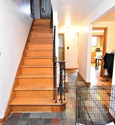 This home is surprisingly spacious! Large 4 bedroom, 2 full bath colonial featuring level entry and convenience to Carnegie Library of Homestead, the Waterfront, not to mention downtown Pittsburgh, Oakland and the Southside too! Large center hallway enhances the flow of this traditional floor plan. Exposed hardwood flooring throughout. Spacious living room displays original, stone fireplace and easily accesses eat in kitchen and first floor powder room. Formal dining room too! The master bedroom is fit for a king and has a wall of closets. The other 3 bedrooms are also nicely sized and offer great closet space too. There is a finished gameroom in the lower level, complete with bar area and walk out to back yard space. The finished laundry room has been recently redone and houses both the newer furnace and instantaneous hot water system, along with the additional full bath with shower. Cozy, side porch off kitchen is an ideal spot for grilling and enjoying the warmer weather!