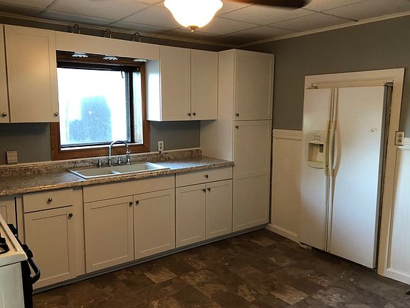 Cute 3 bedroom 1 bath home, new kitchen cabinets & counter top, new ceiling fans in the kitchen, dining room & living room, fresh paint throughout, enclosed front and back porch, wrap around deck, oversized 2 car garage, plus a 30 x 50 shed all this situated on a large .75 acre lot. Average utilities Gas: $55. Elec $85.