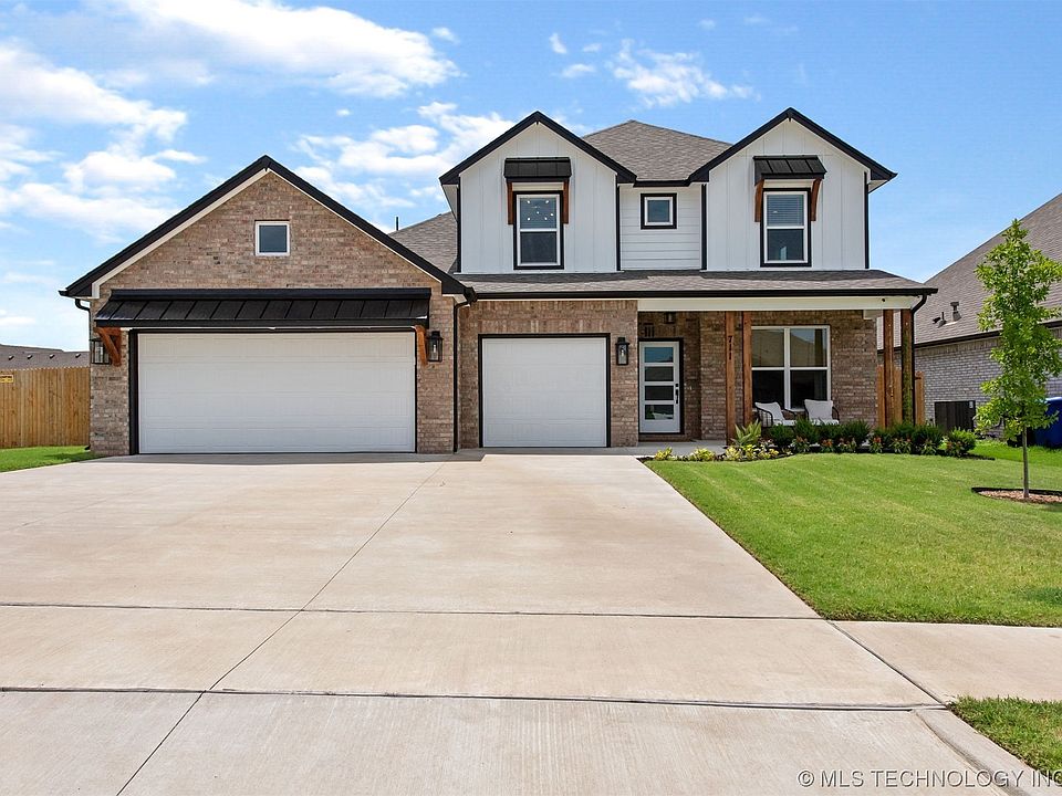 SELLER OFFERING $10,000 towards buyer closing costs or rate discount points with full price offer. Absolutely pristine and like new 2021 construction brick home available in Broken Arrow's centrally located Washington Lane subdivision. Corner lot floorplan includes 4 bedrooms with flex room (possible 5th bedroom), 2.5 baths, 1st floor primary suite, open kitchen floor plan, 3 car garage and covered front and back porches. Downstairs you will be welcomed with soaring ceiling heights, flex room, open kitchen with quartz countertops, island, pantry and pot filler at stove, natural light living space, fireplace, custom butcher block countertop laundry room with sink and an enclosed 3rd car garage bay currently used as a home gym and primary bedroom suite. 1st floor primary suite boasts an oversized bedroom space, soaking tub, double sinks, separate shower with bench, private water closet and walk in closet. Upstairs you'll find a spacious loft living area / game room, 3 bedrooms with generous closet space and a full double sink bathroom. Outdoors features include full privacy fencing, brick exterior, covered front and back porches, and irrigation system. Sidewalk community located near the popular Rose District. Too many upgrades to list on this one come take a look inside!