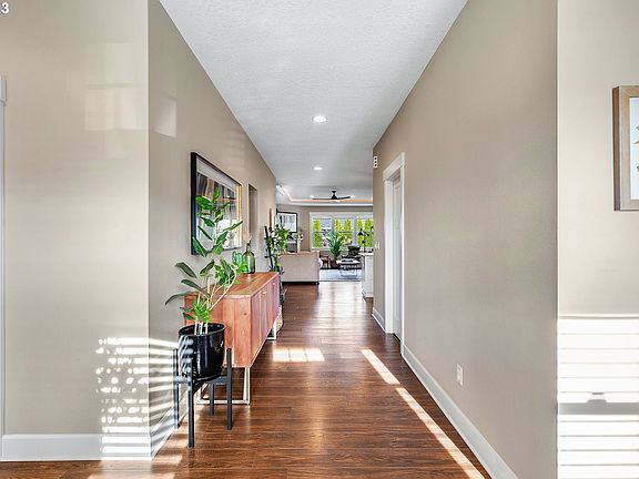 Nestled in Oregon's Wine Country capital of Carlton, 711 McKinley is one-level living made gorgeous. Enviably located on a spacious corner level lot less than a mile to the heart of Carlton's world-renowned wineries, restaurants, shopping & parks, yet situated on the picturesque edge of town currently with views of the rolling countryside. Featuring an elegant & modern open floor plan, the home is filled with natural light, with dimmable ambient lighting cut into the recessed ceiling for a custom-built feel. The dining area provides ample space for gatherings large & small, with slider to the custom paver covered patio for seamless indoor-outdoor living & a generously sized, fully fenced back yard with beautiful mature landscaping. Luxurious upgrades above & beyond the builder level are noticeable throughout, such as custom hardware in the kitchen & dining area, designer light fixtures with under-cabinet lighting, & a glorious white kitchen finished in granite countertops & tile backsplash, complete with large island. Breathe deeply with central air conditioning & the recent addition of a Reme Halo Air Purification system for year-round comfort & health. More ambient recessed ceiling lighting in the oversized primary suite provides a luxurious private haven. The primary bath suite is spa-like with a custom tiled shower, granite countertops, & a generous walk-in closet. Two more bedrooms with another full bath complete the living spaces, with an additional inner flexible room for an office, housing a wine collection, or extra storage. A 3-car tandem garage with epoxy floor leaves plenty of room for weather-protected parking, extra storage, or flexible workshop space. An additional upgrade of attic storage with pulldown entry in the garage gives even more room for storage. A rare retreat, this home is the perfect base for a lifestyle of elegant living in the heart of world-class wine country.