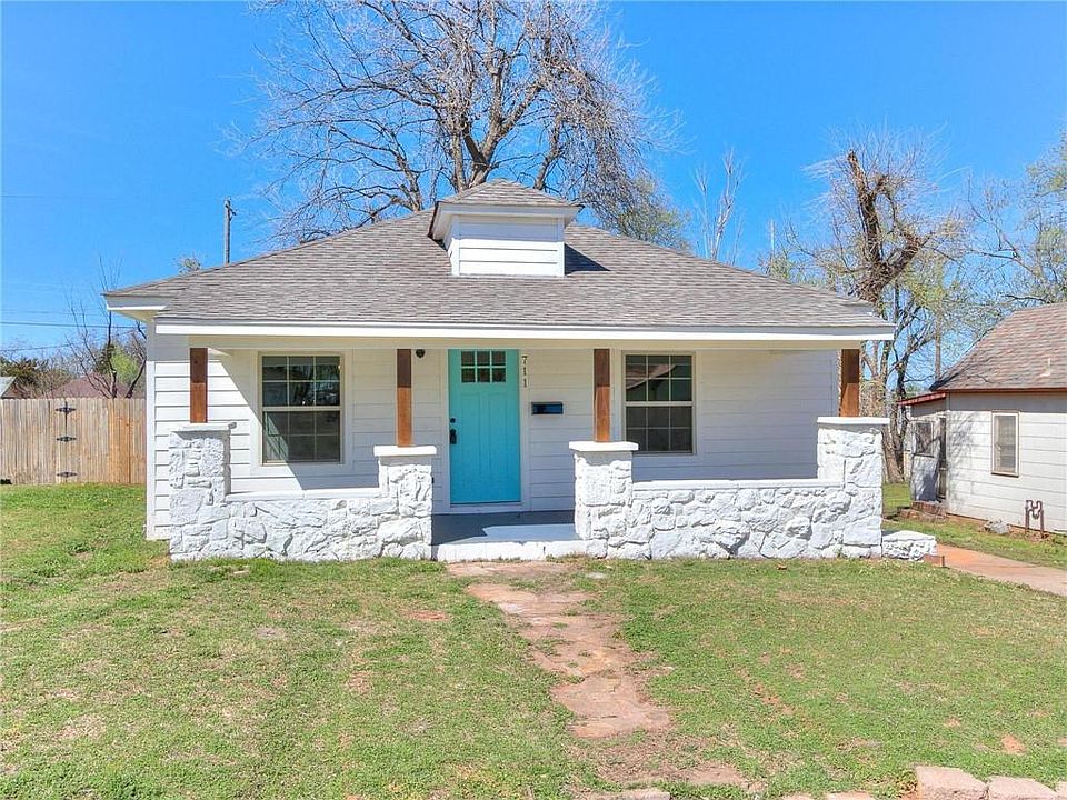This charming 3-bedroom, 1-bathroom home has been completely renovated, with modern amenities and lots of charm! Inside, the living room is warm and inviting, with brand new floors throughout and plenty of natural light. The living room opens nicely to the dining and kitchen area. The modern kitchen offers new appliances, granite countertops and open shelving. The three bedrooms are generously sized and bright, with new windows that offer lots of natural light. The bathroom has modern fixtures and finishes. This home is located in historic El Reno with easy access to shopping, dining, and entertainment options. This home is a must-see, with its charming character, modern updates, and great location! Don't wait! Schedule your private tour today!