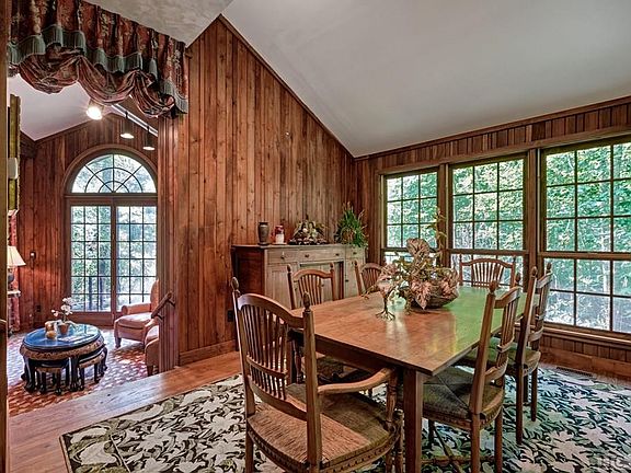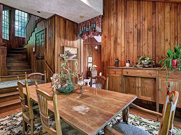 Unique and charming this house needs some fixing up but is priced accordingly on over 3 acres. A Jim Fox design with high ceilings plenty of windows and changes of level. Privacy is afforded as the property is adjacent to a nature conservancy. Small stream goes thru the property and there is a natural pond site. Mature tree. This house is waiting for your personal touches and updates to make it a wonderful second home or weekend getaway.
