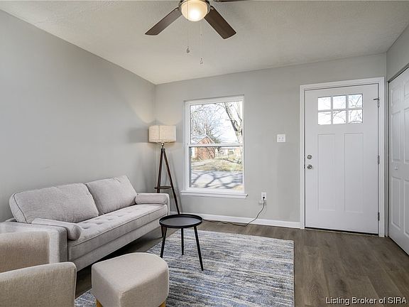 100% financing available for qualified buyers! Call for details! Check out this newly renovated three bedroom and one bath home in Jeffersonville! Conveniently located near Kroger, Meijer, Duffy’s Landing and just minutes to downtown Jeffersonville and Louisville! Close to Jeffersonville’s planned pickle ball courts! This gorgeous home has a new roof, new windows and the cutest, custom-made, pinewood, shutters and flower boxes! You walk in and will love the fresh paint and newly installed luxury vinyl plank flooring throughout! The living room flows into the renovated eat in kitchen. Great space for a dining table! The beautiful kitchen boasts new white shaker style cabinets, new stainless steel appliances, custom, ceramic tile backsplash and granite countertops! Lots of natural light and a great view of the spacious back yard! Heading down the hall to the bedrooms, you’ll notice the spacious hall closet for storage and the newly renovated bathroom! The bathroom has new custom tile, new vanity and quaint light fixtures! The three bedrooms all have good size closets and windows that bring in lots of natural light! Come see this beautiful home in the heart of Jeffersonville! It's so cute!
