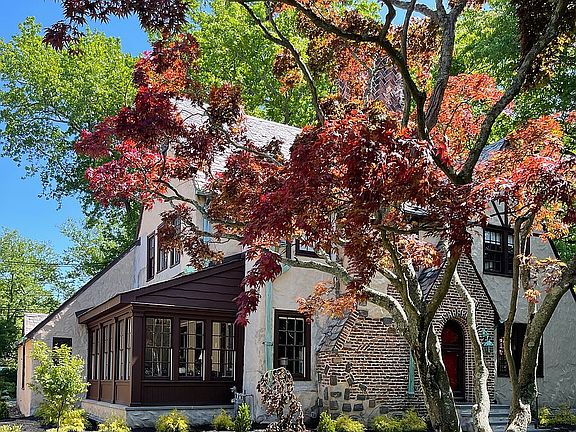 FULLY FURNISHED FULL-YEAR RENTAL. Beautiful large Tudor recently restored retains its period detail and charm. 4 bedrooms, 3 full baths, first floor office and new enclosed sunroom for additional living space. Extra large living room with original beamed ceiling and stone fireplace. Formal dining room with built-in cabinets. New eat-in kitchen with KitchenAid appliances and marble countertops. All new Samsung smart TVs, beds and bedding. Primary bedroom with king size bed - all other bedrooms feature queen or full size beds. Two car attached garage, full basement with laundry and fitness area. Two-zone gas heat and central AC. High speed internet & lawn maintenance included with lease. Tenant pays gas, electric and water. One year lease with optional renewal. Owner provides high speed internet, all property and lawn maintenance. Tenant pays gas, electric and water. No smoking or pets.