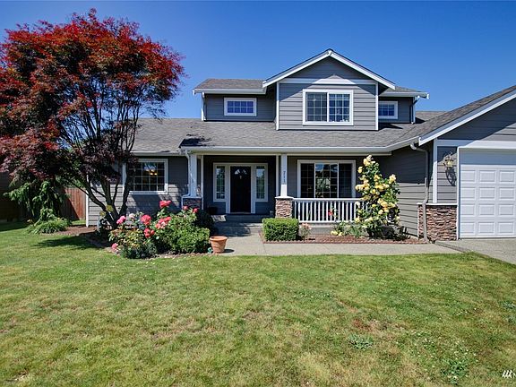 NEW CARPET SCHEDULED FOR INSTALL IN SEPTEMBER, ALL INTERIOR WALLS ARE BEING PATCHED AND PAINTED IN AUGUST! Beautiful home with large level fenced yard & exterior was painted in July 2022! A welcoming covered front porch leads you into an expansive open living space with high vaulted ceilings. Primary bedroom w/ 5 piece en suite bath & walk in closet located on the main level. Double sided gas fire place separates the living and dining space. Spacious kitchen w/ center island, pantry & great counter space. Sliding glass door in the kitchen leads to the gorgeous back yard. Powder room, Laundry & formal dining/flex room also located on the main level. Two bedrooms and one full bath located upstairs. Elevation does not require flood insurance.