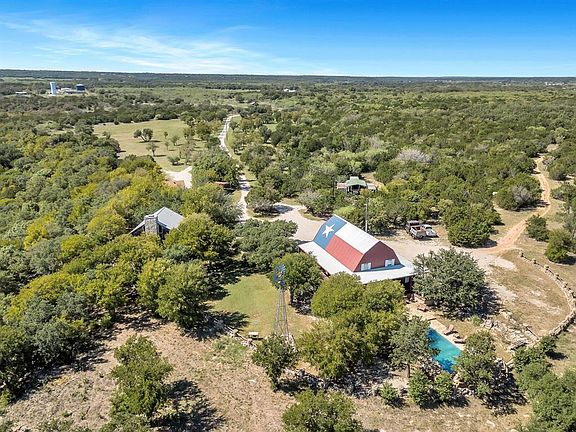 ESCAPE to THE PHOENIX RANCH! Showplace estate less than 90 miles from downtown Fort Worth and 1.1 mile off of I-20! Seclusion and convenience. Two beautiful houses, both have wood decks with amazing elevated views of the valley and Colony Creek to the south! The party barn is a MUST see with 2 bedrooms upstairs, a bunk room and a full kitchen and living area and big open room with wood burning fireplace! Beautiful in ground pool with waterfall! Houses and barn sit back off the FM road, an exceptional interior road system. Three tanks on the property. High hills, deep draws, provides incredible wildlife habitat. Includes 4 blinds, and 5 game feeders. Hunters paradise with wild turkey, deer, hogs and dove.