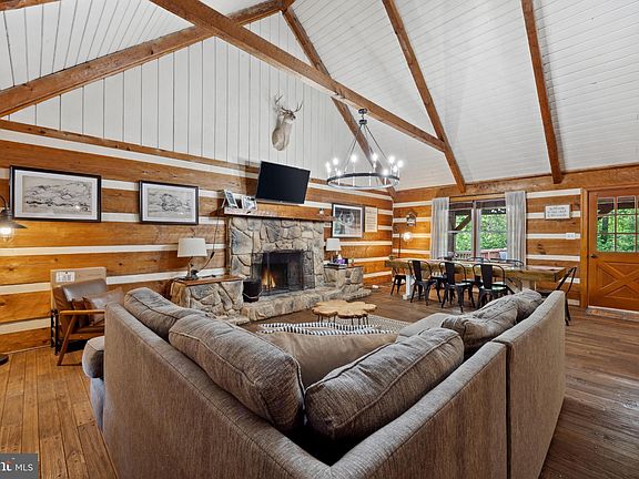 Discover this one-of-a-kind log cabin retreat nestled right on the Shenandoah River and surrounded by majestic mountains. With five bedrooms, apark-like backyard, and easy access to a calm stretch of water, this property offers the perfect blend of relaxation and adventure. Located just 1.5 hours from DC, andminutes from Seven Bends State Park an the quaint dining options of Woodstock, the cabin is both convenient yet private. Inside, you'll find authentic log construction--both interior and exterior creating a warm rustic atmosphere. A stone woodburning fireplace anchors the living area, adding comfort and charm during every season.The main level features primary bedroom plus lofted bunk room with two full bathrooms off the living area. The lower level offers three additional bedrooms, a fullbathroom, a second living space and walk-out access to the backyard. Step outside to enjoy a concrete patio, hot tub, and plentiful parking, perfect for entertaining orunwinding after a day on the river. Currently operating as a successful short term rental for several years, this property is equally suited as a private getaway, familyretreat, or income producing investment.