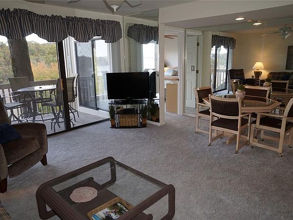 Beautiful 2BR/2BA end unit just four steps from parking and pool - SLEEPS 8!! Nothing for you to worry about: unit has updated flooring, appliances, and HVAC. Inviting tiled entryway opens to adorable living area.Kitchen has new microwave and refrigerator, plus newer full size washer and dryer with extra shelving in laundry closet. Walk out onto your deck from master bedroom and living area. Deck has gate/door so you can easily take the kids or dogs for a quick walk!Enjoy the breathtaking views from this ultra clean turn key condo,spend the day relaxing by one of 3 pools (1 heated)or bring your boat for a fun day on the lake because a 10x28 boat slip is included! Just minutes to shopping, restaurants and attractions by water or land.