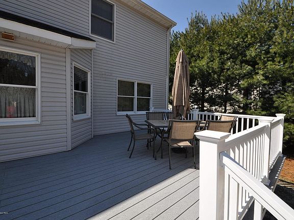 Located in Oakfield on large lot that backs to woods, is this 3 BR, 3 full bath, 2-car garage Colonial with full basement. Features include Hardwood floors, Gas HWBB Heat, Granite counters in Kitchen & baths, large deck, 2 Fireplaces. Master BR has cathedral ceilings, large walk-in closet and master bath with both shower & soaking tub.