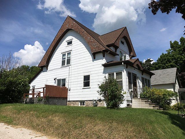 Is a well built home a thing of the past? NO NOT THIS HOME. Good solid foundation, good sized rooms on every level, some old world charm in built-in's. Nice sun porch, hardwood floors. first floor has sun porch, living rm, bedroom, full bath dining rm, and a very nice updated kitchen. Second floor has 3+ bedrooms, full bath with claw foot soaker tub and a kitchen area with could be a laundry or a craft area. walk up attic has nice windows for light and just waiting for your imagination to get started. Garage was built in 1987, extra deep. The back yard is fenced and has many fruit trees and grape vines. Home is located near churches, library and historical homes. the home is in need of some repair, bring your paint brush. Home is sold as is.