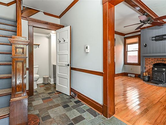 Nestled on a quiet street in Ross Twp (North Hills School District) you'll find this beautiful 4 BR, 1.5 Bath gem that offers the charm & character that you've been looking for! Enter the home via the expansive, newly painted front porch and into the foyer where you're met with ceramic tile & dark, wood-stained trim up the staircase and around all doors and windows. The exquisite hardwood floors take you into the living and dining rooms where there is a fireplace in each and plenty of windows bringing in lots of natural light! The kitchen boasts SS appliances, a gas stove, soft close cabinets, granite counters and lots of cooking space. There are 3 BRs on the second floor with new paint and new carpeting and a 4th large BR on the 3rd floor, perfect for guests. New furnace installed and fresh paint in many of the rooms. The outside is meticulously maintained and offers a flat back yard and 2 off street parking spots. Come take a look to for yourself, fall in love!