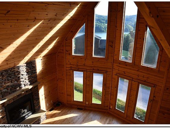 Stonecoal Lake Living...Home with log siding and stone exterior. This home sits atop a knoll for a view of the lake! Featuring solid oak hardwood floors throughout, all appliances, stone fireplace with gas logs for those chilly evenings. Full unfinished basement with potential for finishing!