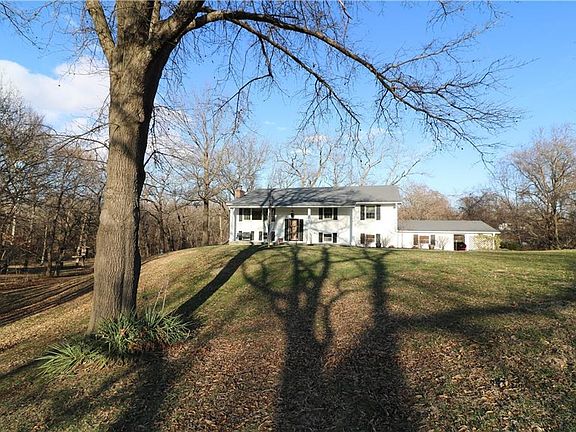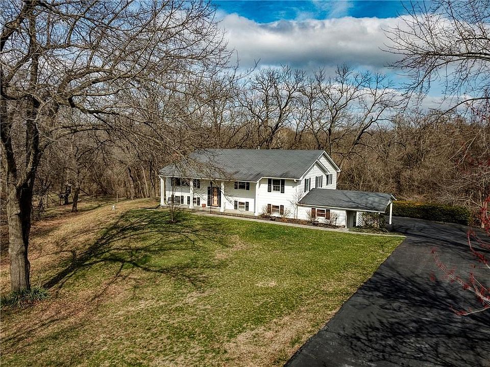 PRICE REDUCTION AND THE SELLERS ARE GETTING A FULL ROOF REPLACEMENT! THIS IS A MUST SEE - photos do not fully express the beauty of this home + property. Incredible wooded 2.74 acre estate is available for the first time since 1976 - this one owner home has been well loved, cared for, and updated + added to. This raised ranch home had an extensive addition in 2012 completed by Brant Homes consisting of the back of the home being extended for a large sun room with floor to ceiling windows, a primary suite addition, in which the former master bedroom was transitioned into a spacious laundry room, as well as the addition of a new garage, covered all-seasons room in the basement, and convergence of the former garage into a workroom/utility area. There is so much living area within this home, amazing natural light + multiple different entertaining areas! The main floor consists of a large living room area, kitchen + dining room, oversized sun room + recreation area, primary suite, laundry room, two additional bedrooms + another full bathroom. There are two different sets of stairs for access to the lower level - one is equipped with a working chairlift. The basement has a large open room with a wood burning fireplace, small bar area, and a full bathroom + second laundry area. There is also a separate space with access to two closets and windows that would be able to be used as a fourth bedroom. Additional spaces in the lower level include the utility/workshop room, garage, and all seasons room formerly described. BONUS outdoor shed/garage which attaches to a carport!! The park-like setting surrounding the home resembles a dream! Surround yourself with nature's beauty, numerous mature walnut trees, plenty of wildlife. Some of the special features of this home include a beautifully custom stamped concrete front porch and walkway, arched transitions, genuine hardwood floors, Andersen windows, and charm you have to experience in person to understand.