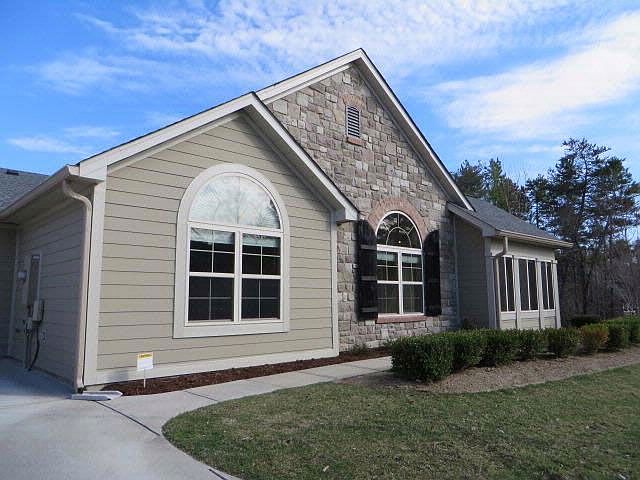 Beautiful open & flowing RANCH style condo with private setting & great entertaining space. Vaulted ceilings, tiled entry, Hardwoods thru main living area. Great Room has fireplace & opens to large Sun Room w/upgraded blinds and 3 walls of windows to enjoy scenic, wooded views. Dining area + Breakfast Bar. Loads of cabinet/counter space in Kitchen + skylight. Spacious Master w/private bath that has dual sinks, walk-in closet & shower. NEW ROOF 2011.Large secondary bedroom & full bath. Separate Office can be used as a 3rd bedroom for your overnight guests. Laundry Room w/cabinet storage + additional storage room. Lots of windows make it light & bright. Patio area for relaxing or grilling. Easy living on one level. Low-maintenance life-style. Close to shops & dining. Pool & fitness center! (Listing 6297048 Confirmed 5/15/2014.)